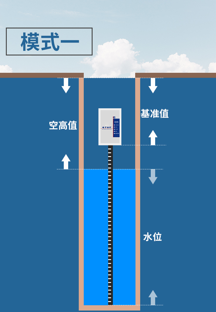 1、 空高模式:水位值=水尺總長(zhǎng)-水位+基準(zhǔn)值