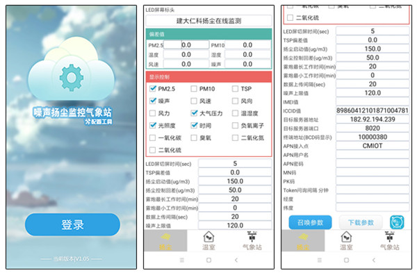 下載安裝配置工具,在揚(yáng)塵主機(jī)開(kāi)機(jī)的狀態(tài)下搜索無(wú)線網(wǎng)并連接。然后點(diǎn)擊下好的配置軟件,不需要賬號(hào)和密碼即可配置顯示標(biāo)頭、噴淋上下限等參數(shù)。