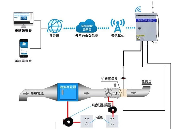 建大仁科油煙監(jiān)測系統(tǒng)由油煙在線監(jiān)測儀、數(shù)據(jù)傳輸技術(shù)和環(huán)境監(jiān)測云平臺組成,該系統(tǒng)可對油煙濃度、顆粒物濃度、非甲烷總烴濃度,以及風(fēng)機(jī)、凈化器的運(yùn)行狀態(tài)進(jìn)行實(shí)時監(jiān)測,集油煙監(jiān)測、數(shù)據(jù)采集、數(shù)據(jù)傳輸?shù)裙δ転橐惑w,將數(shù)據(jù)上傳到監(jiān)控平臺,實(shí)現(xiàn)監(jiān)管人員和餐飲企業(yè)管理的遠(yuǎn)程查看。