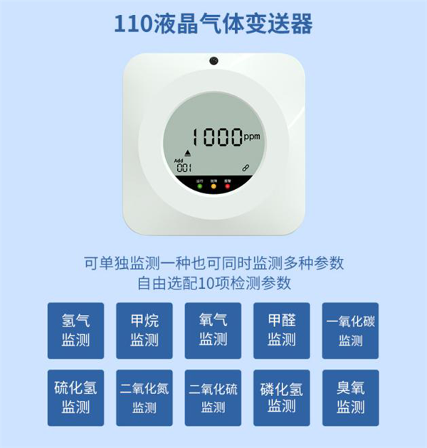 一臺設備只能選擇監(jiān)測一種氣體,可以從氫氣、一氧化碳、硫化氫、甲烷、二氧化氮、二氧化硫、氧氣、甲醛、臭氧、磷化氫等氣體中選擇一種進行監(jiān)測,如需監(jiān)測多種氣體,也可以選擇多臺設備搭配監(jiān)測。