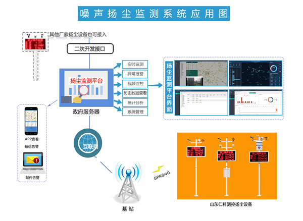 噪聲揚塵監(jiān)測系統(tǒng)由前端數(shù)據(jù)監(jiān)測站、通訊服務(wù)器和環(huán)境監(jiān)測云平臺構(gòu)成,能夠?qū)κ┕がF(xiàn)場的環(huán)境進行實時在線監(jiān)測與預(yù)警監(jiān)管,及時反饋工地噪聲、揚塵的情況。