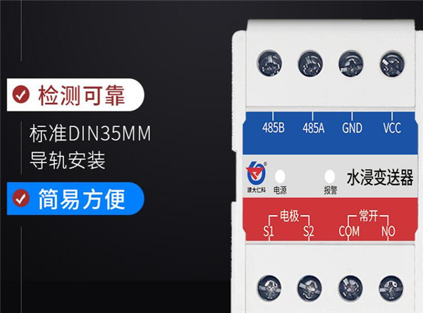建大仁科卡軌殼水浸傳感器(RS-SJ-N01R01-4)采用獨有的交流采樣技術(shù),準確區(qū)分是否發(fā)生水浸,因為采用交變電流檢測,電極即使長時間浸泡也不會產(chǎn)生電泳極化,不依賴特殊電極,做到壽命長、檢測可靠。采用 485 通信接口標準 Mobus-RTU通信協(xié)議,可接入現(xiàn)場組態(tài)系統(tǒng)或 PLC;帶有1路繼電器常開點輸出,方便接入現(xiàn)場設(shè)備,標準 DIN35mm導軌安裝,安裝方便。