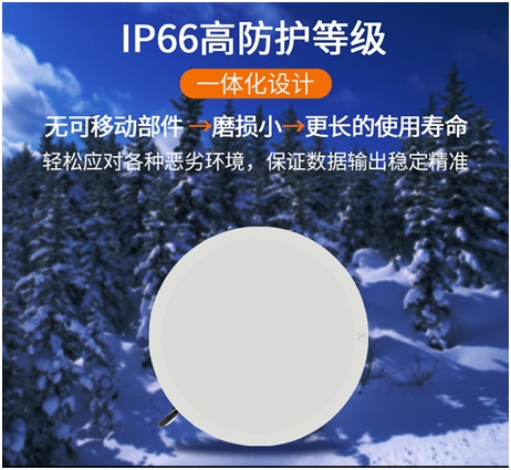 6、超聲波風速風向傳感器采用一體化設計,IP66高防護等級,無移動部件,磨損小,具有更長的使用壽命,能夠輕松應對各種惡劣環(huán)境,保證數(shù)據(jù)輸出穩(wěn)定精準。
